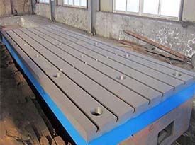 鑄鐵平板又稱鑄鐵平臺,外觀基本上是箱體式,工作面有長方形、正方形、圓形等,材料為HT200-300,QT400-600,采用刮研工藝,工作面上可加工V形、T形、U形槽、燕尾槽、圓孔、長孔等,是用于工件、設(shè)備檢測、劃線、裝配、焊接、組裝、鉚焊的平面基準(zhǔn)量具。